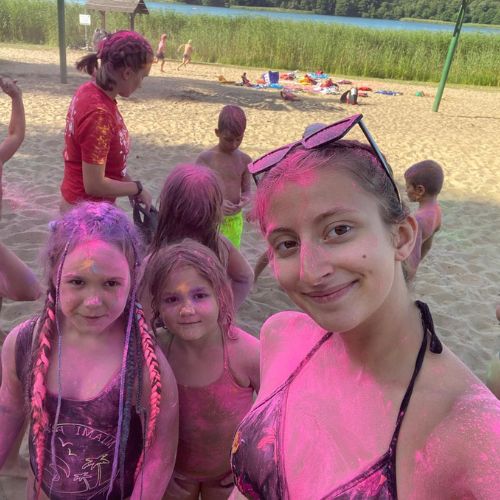 Nie zabraknie również zajęć rozwijających ciekawość świata i odpowiedzialność – takich jak podstawy pierwszej pomocy czy poznawanie zasad bezpieczeństwa na wodzie. Każdy dzień kończymy wspólną zabawą i integracją: podchodami, dyskoteką, ogniskiem czy ulubionymi grami zespołowymi.